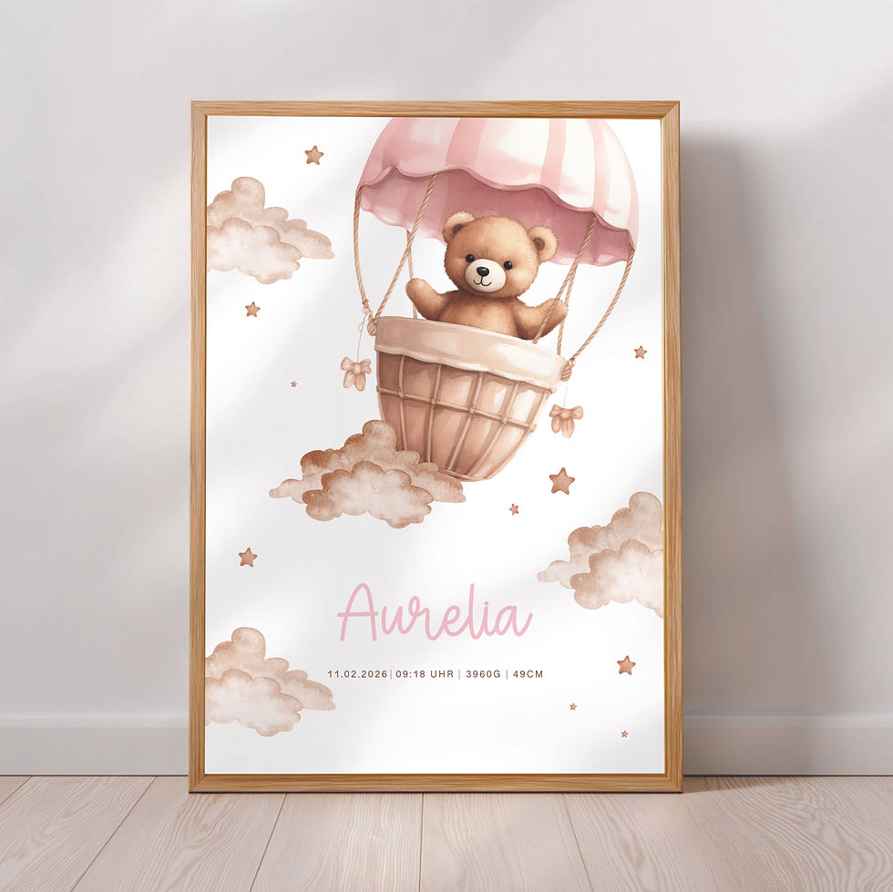 Dieses Poster kannst du dir individuell mit Namen, Geburtsdatum, Uhrzeit, Größe und Gewicht des Babys personalisieren. Die Poster werden auf wunderschönem und hochwertigem 300g/m2 Papier regional und klimaneutral gedruckt. Das Papier ist sehr fest, daher können sie auch ohne Bilderrahmen aufgehängt werden. Die Poster werden gerollt an Dich versendet.